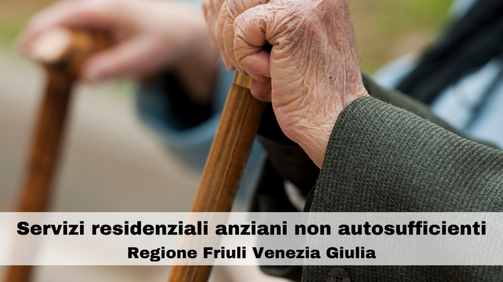 La Regione Friuli Venezia Giulia apre una manifestazione di interesse dedicata ai servizi residenziali per anziani non autosufficienti, al fine di adottare modelli di gestione integrata che prevedano lo sviluppo di soluzioni istituzionali per una gestione pubblica associata e il ricorso a forme di partenariato pubblico-privato, sostenute da co-finanziamento, per gli interventi edilizi di riqualificazione o sostituzione mediante nuova edificazione degli immobili esistenti.